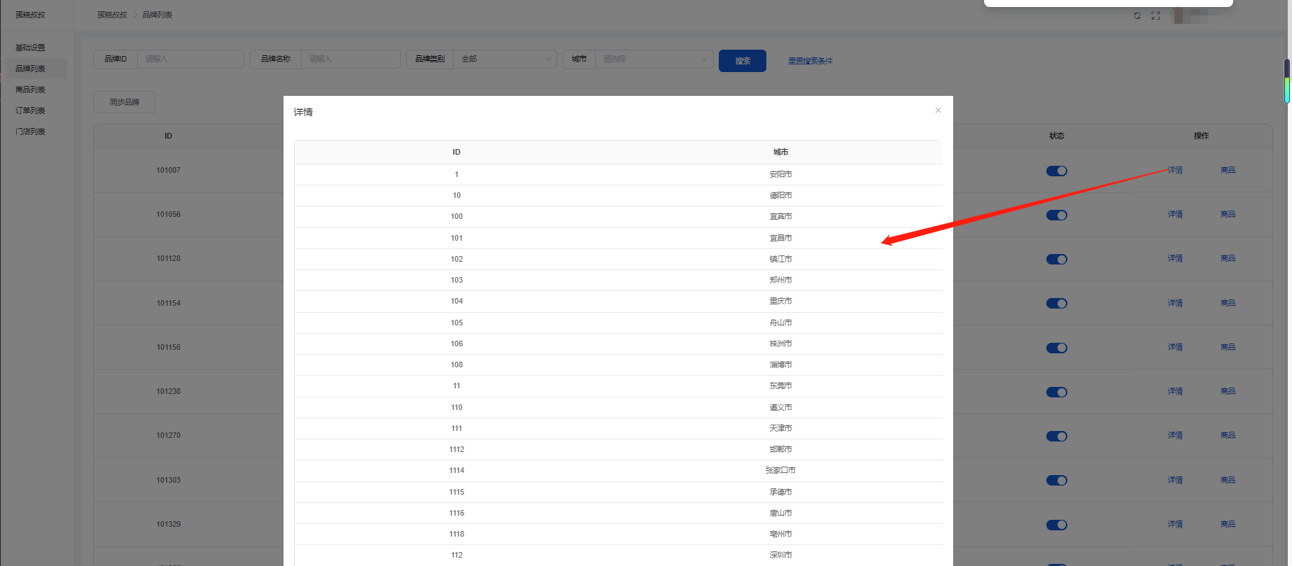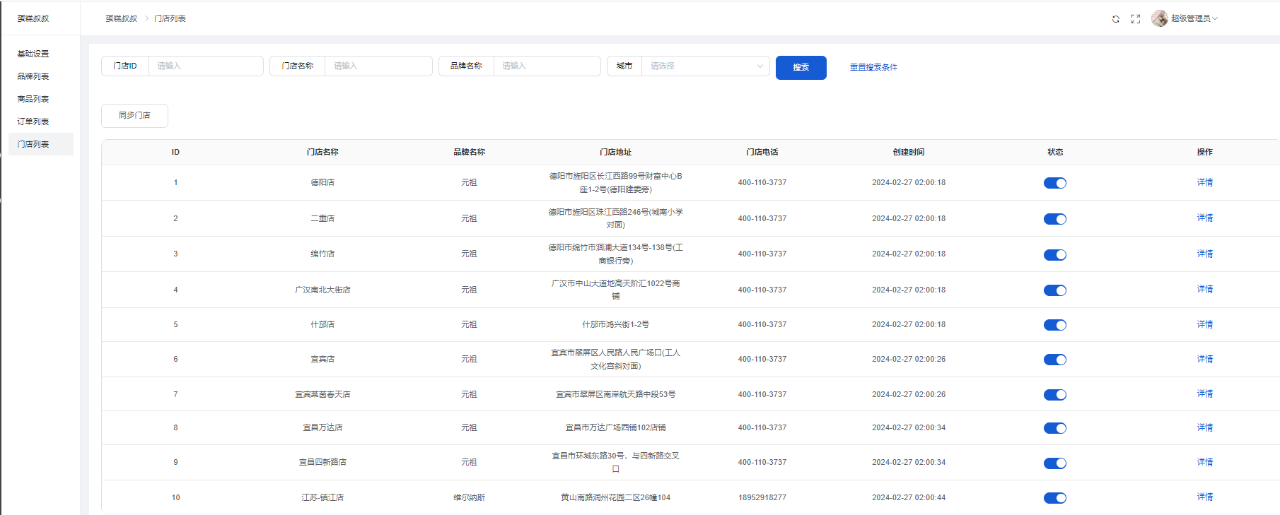 支持输入门店id、门店名称、品牌名称、城市搜索门店