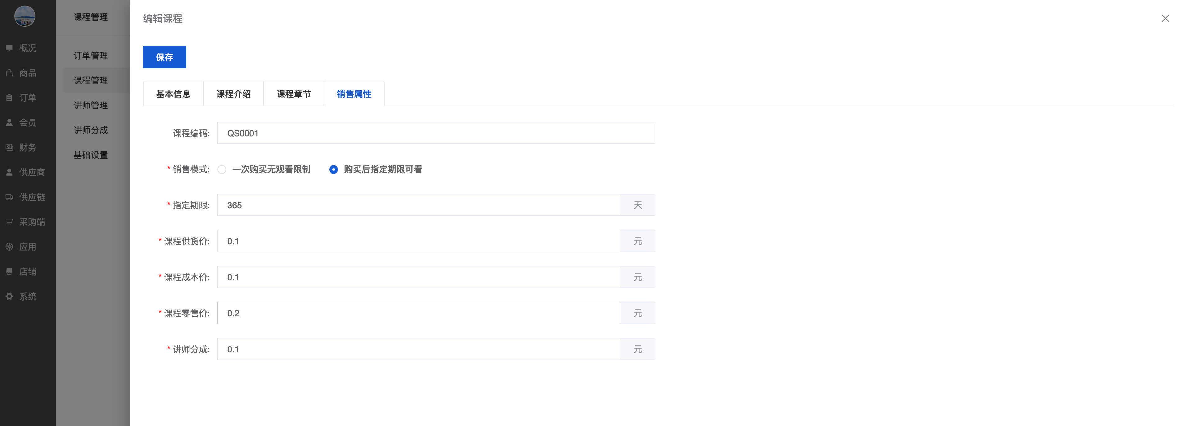 供应链中台可以添加讲师、课程,通过API对接商城端可以同步中台的课程进行销售,销售后中台结算支付,商城端会员即可获得观看课程的权限。