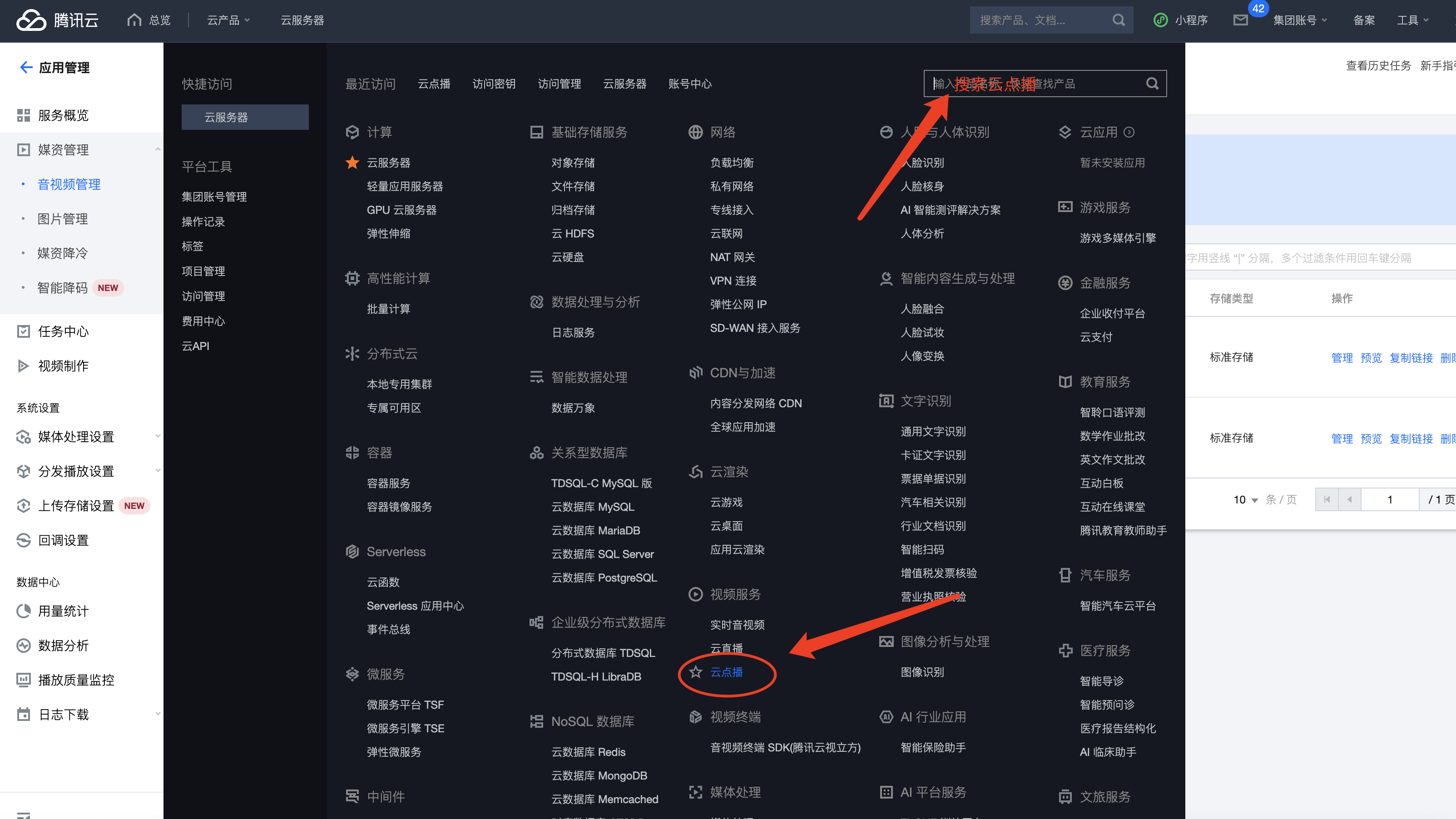 云点播防盗链参数:进入腾讯云平台–云产品搜索进入(云点播)