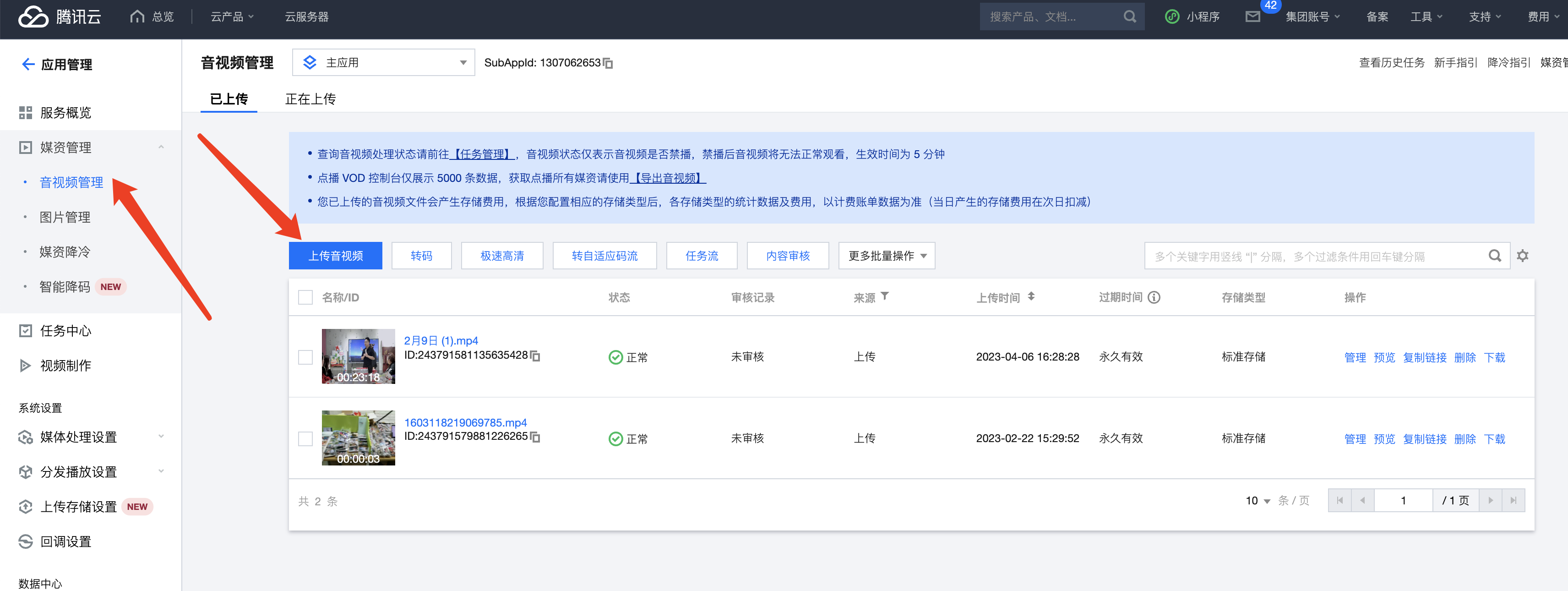 在腾讯云云点播功能中上传视频,注意研究云点播分类功能,上传的课程添加好分类,避免后面多了混乱。