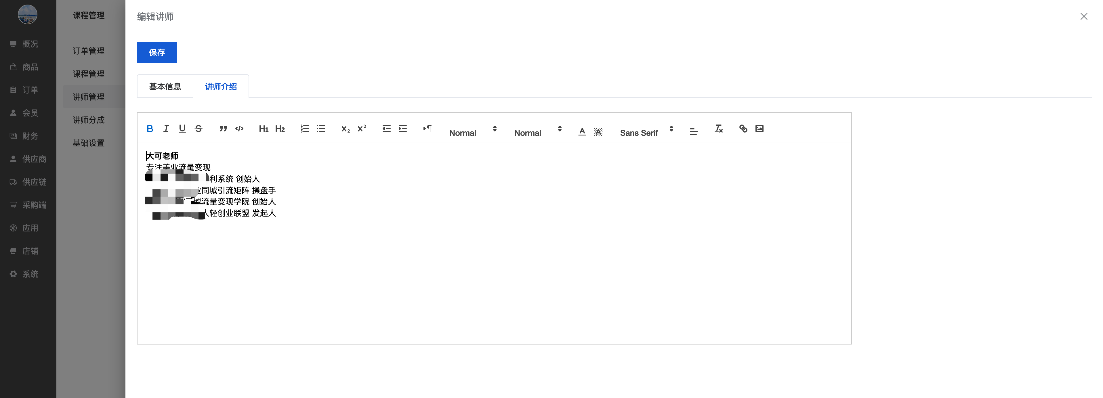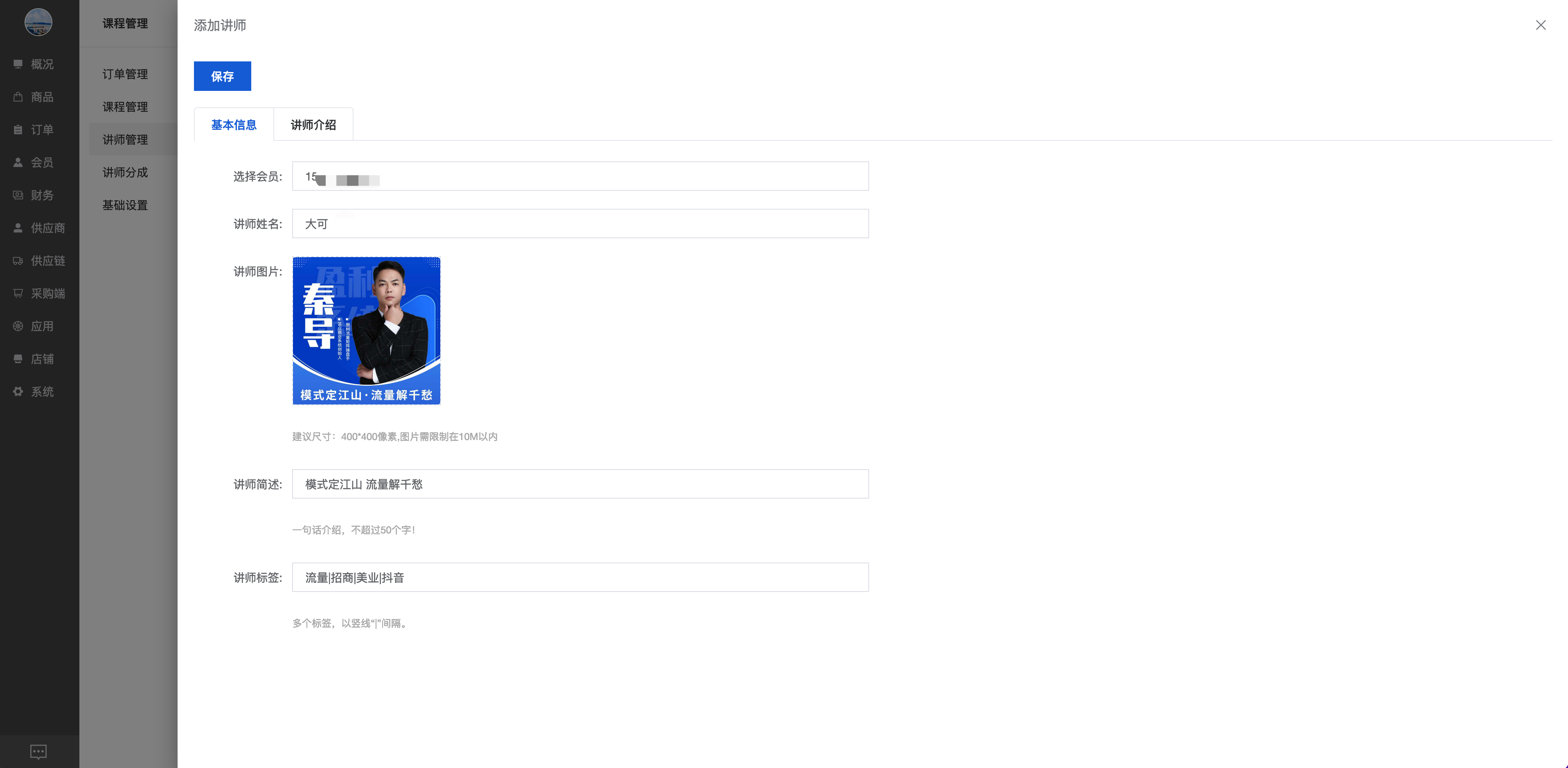 添加课程讲师,如果是同步上游供应链的课程,则显示在第三方讲师中,不支持编辑。