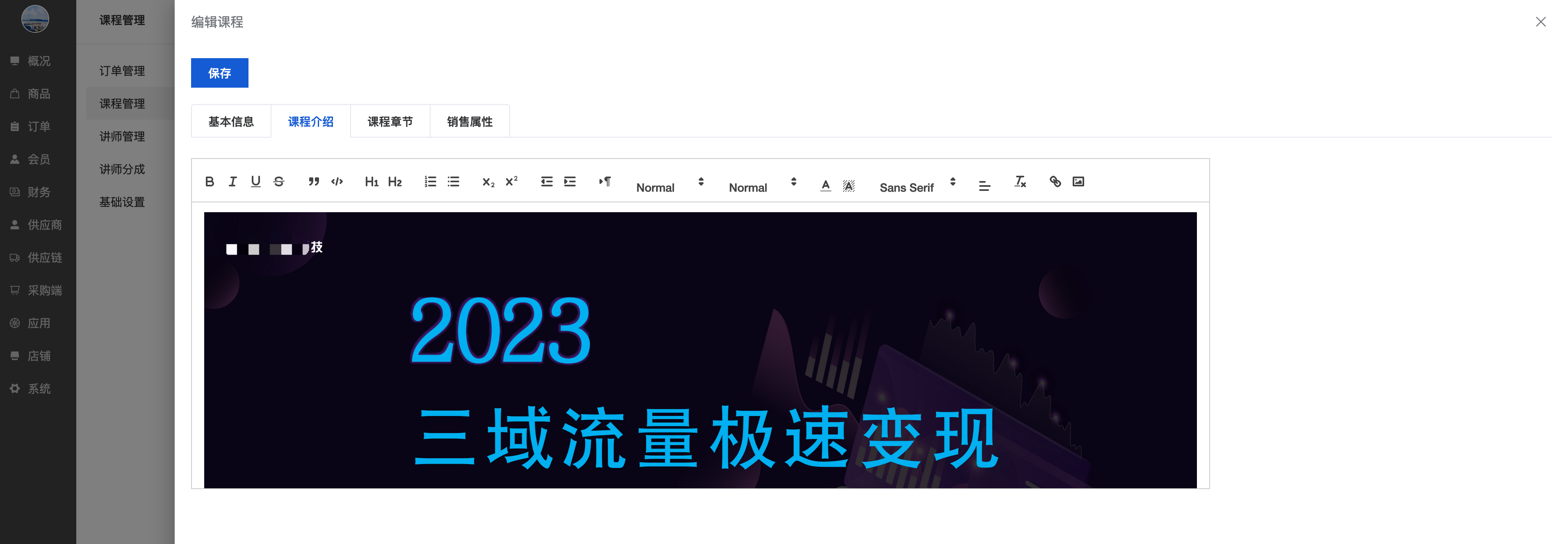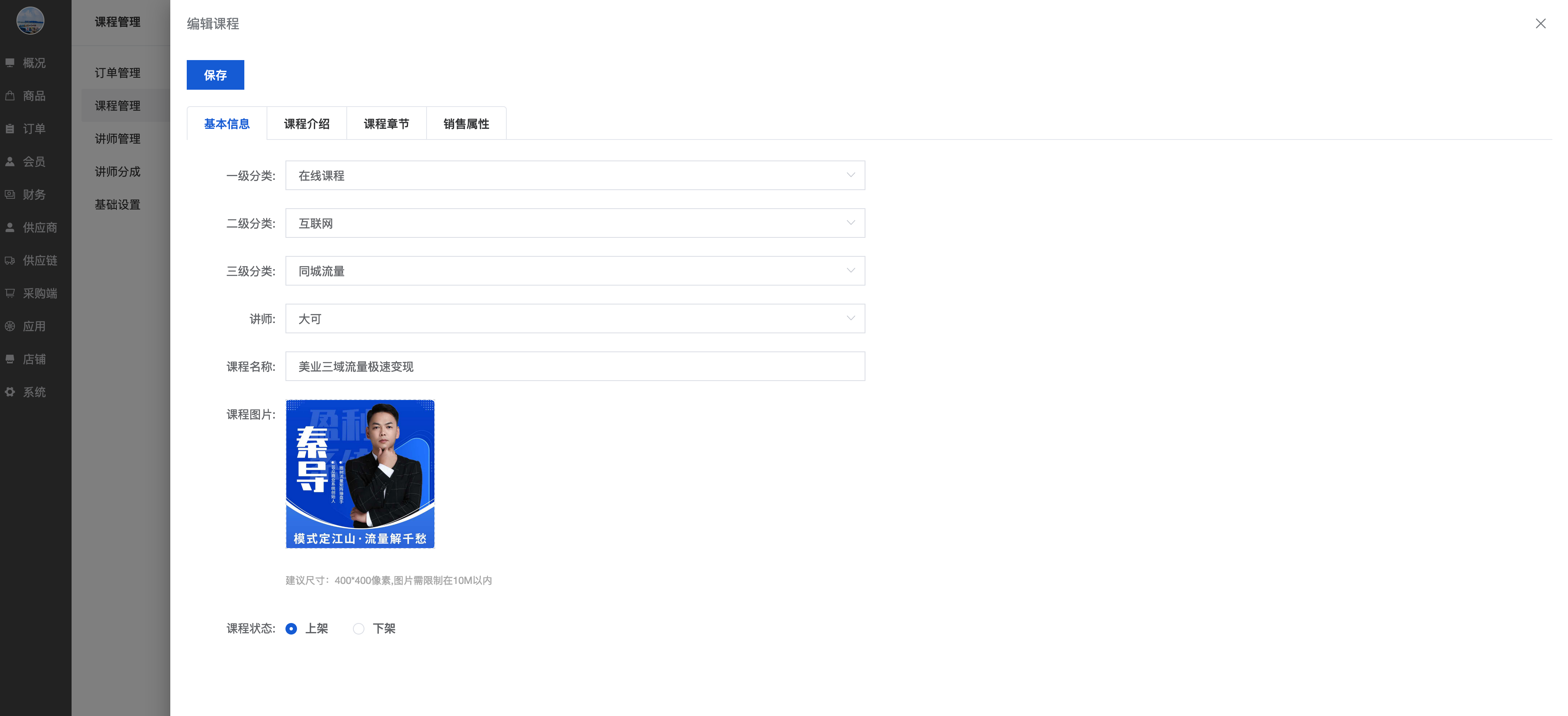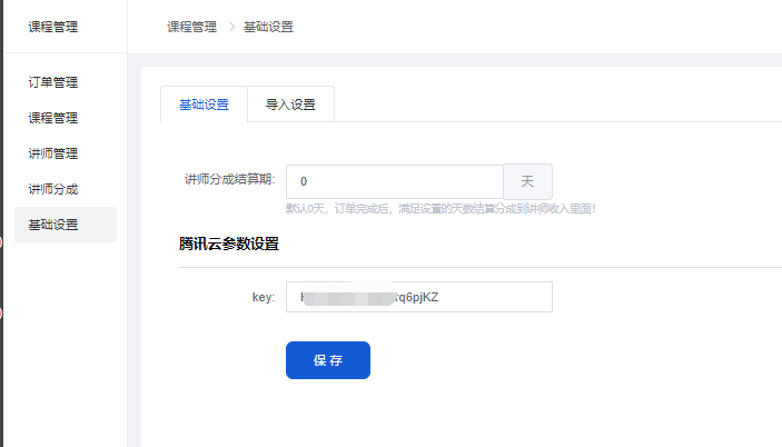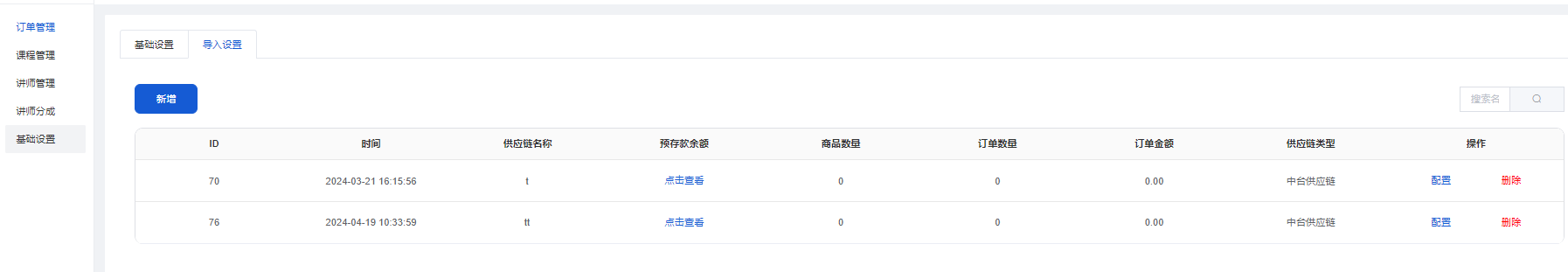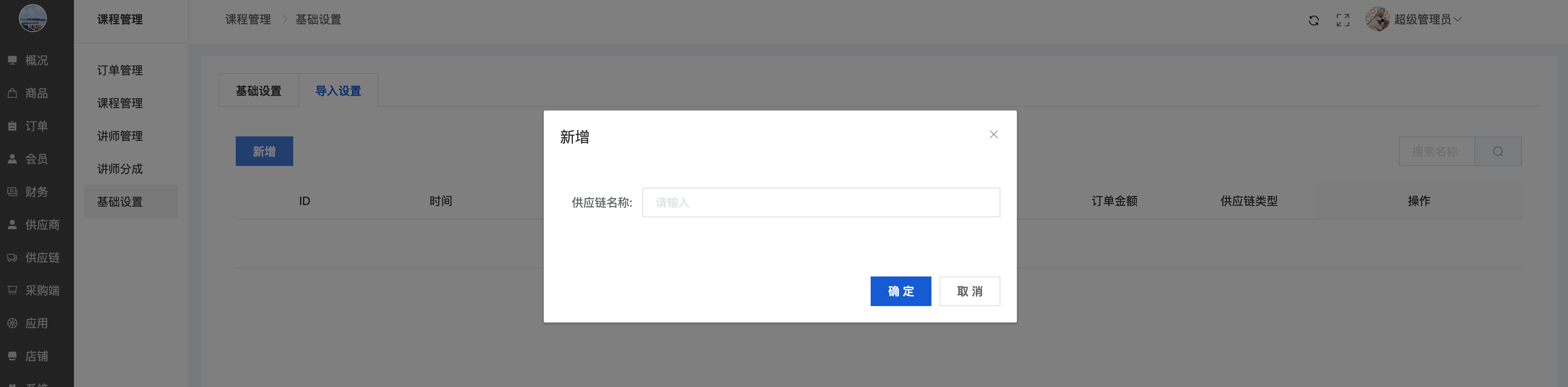 - 导入设置:添加上游供应链中台,添加后点击配置好对接的上游平台信息,保存后可以同步其他供应链中台的课程到自己的中台再进行分发销售