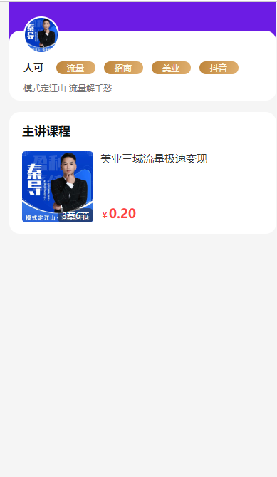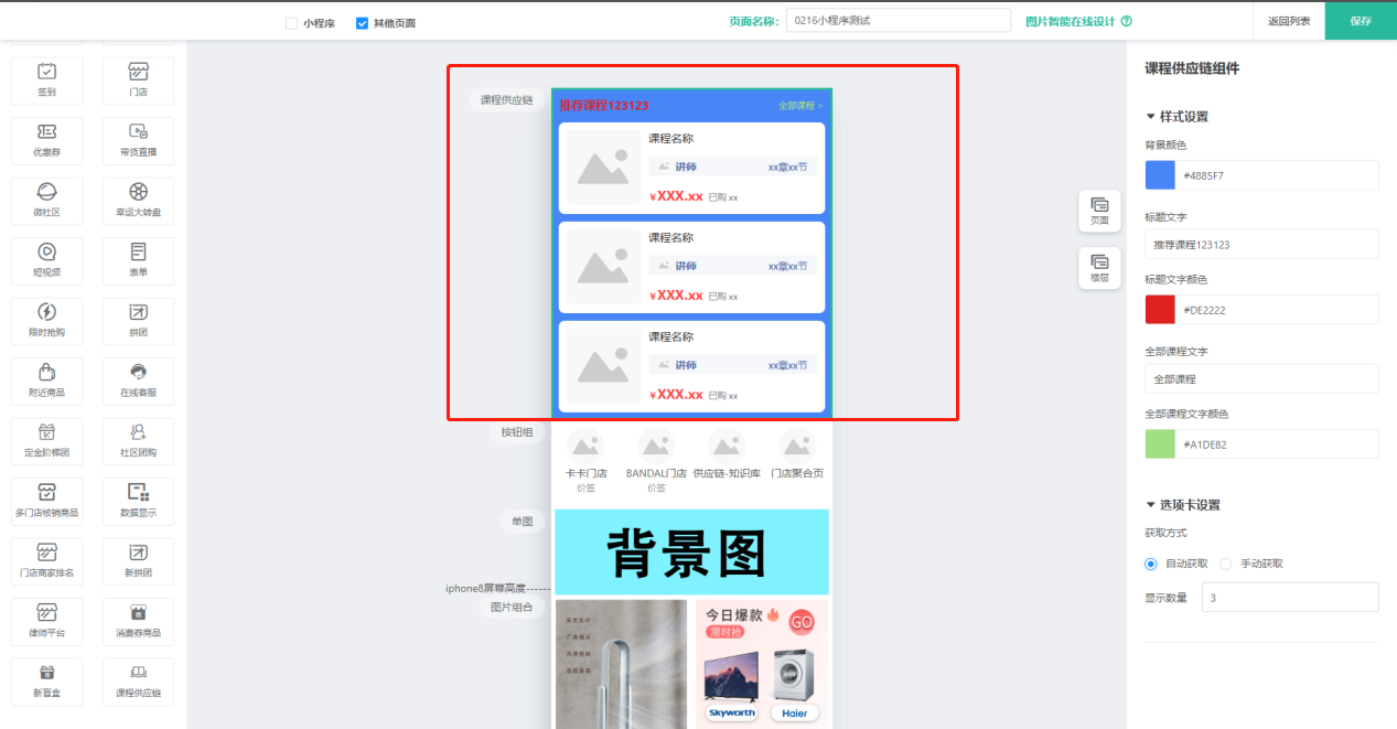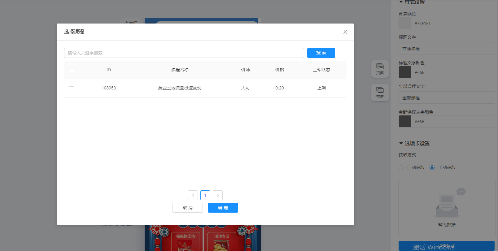 H5默认模板地址,小程序默认模板地址:可以复制H5链接在前端页面打开展示相关的课程,也可通过在装修DIY单独装修进行跳转页面