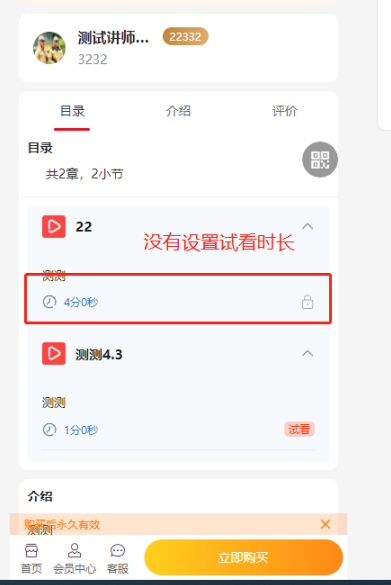 试看时长:由中台设置 若没有设置试看时长 则显示设置好的视频时长,如果视频时长也没有设置 这都不显示