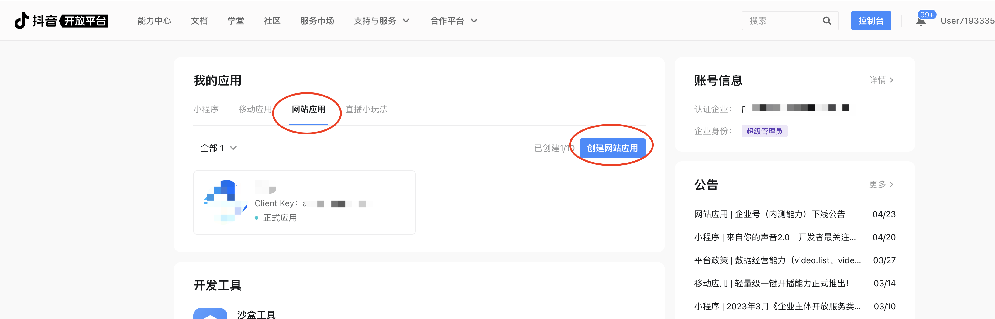 注册抖音开放平台:https://developer.open-douyin.com/console?type=4