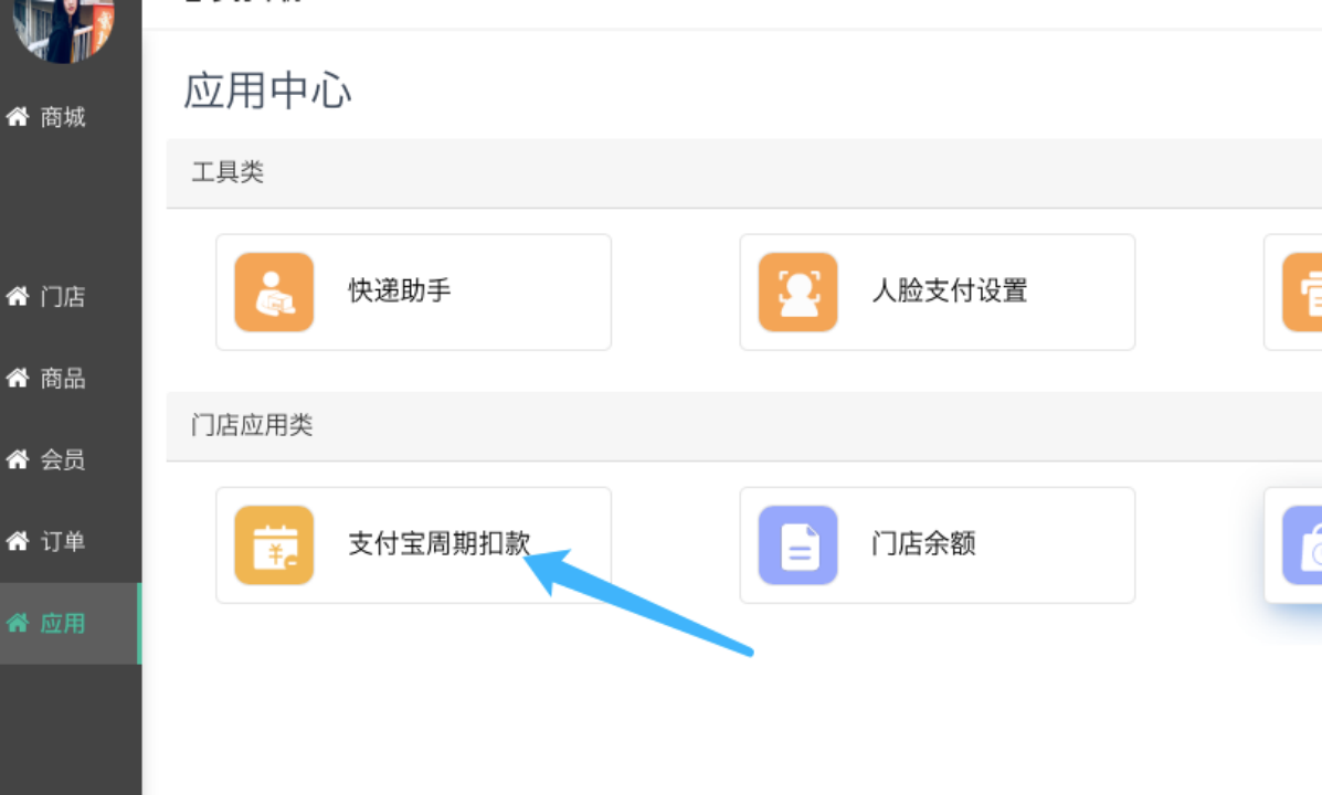 1,门店独立后台应用处增加支付宝周期扣款应用