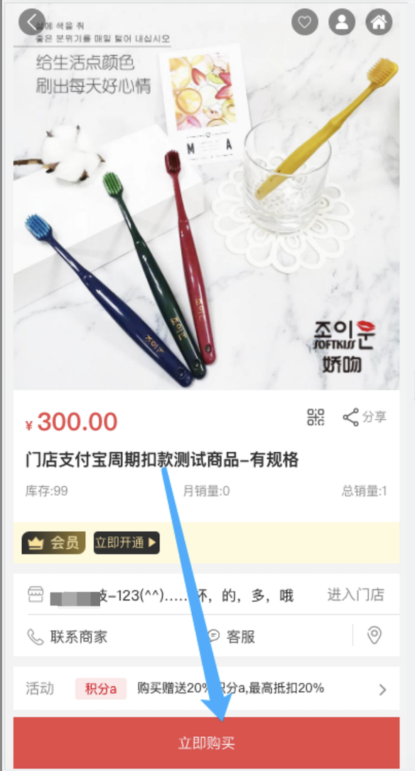 开启支付宝周期扣款的商品没有加入购物车按钮,只能立即下单,如下图: