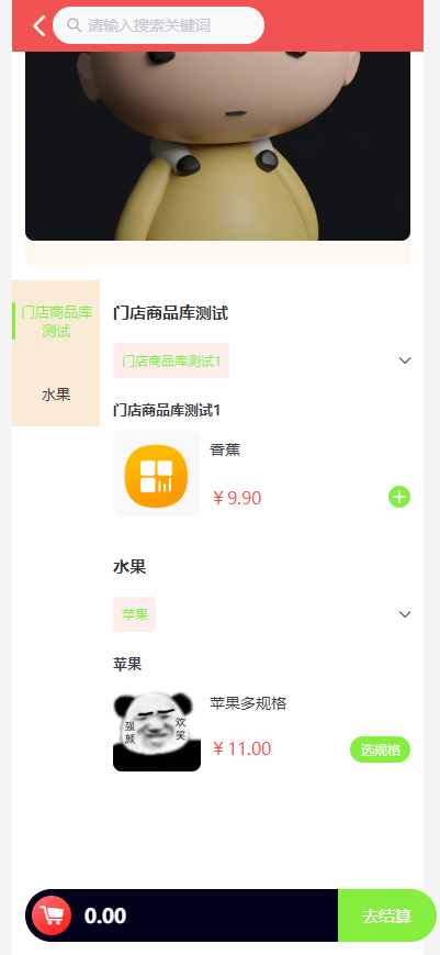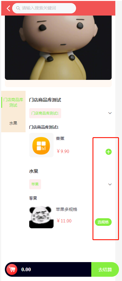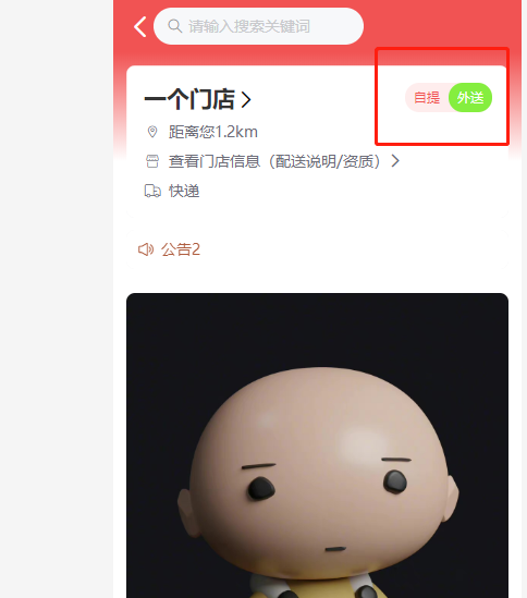 搜索栏:搜到当前门店的商品