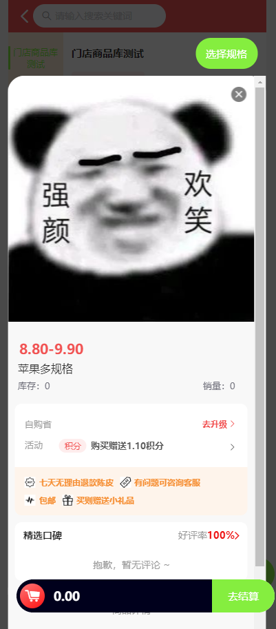 多规格商品点击商品弹出商品详情,上方可以点击选择规格