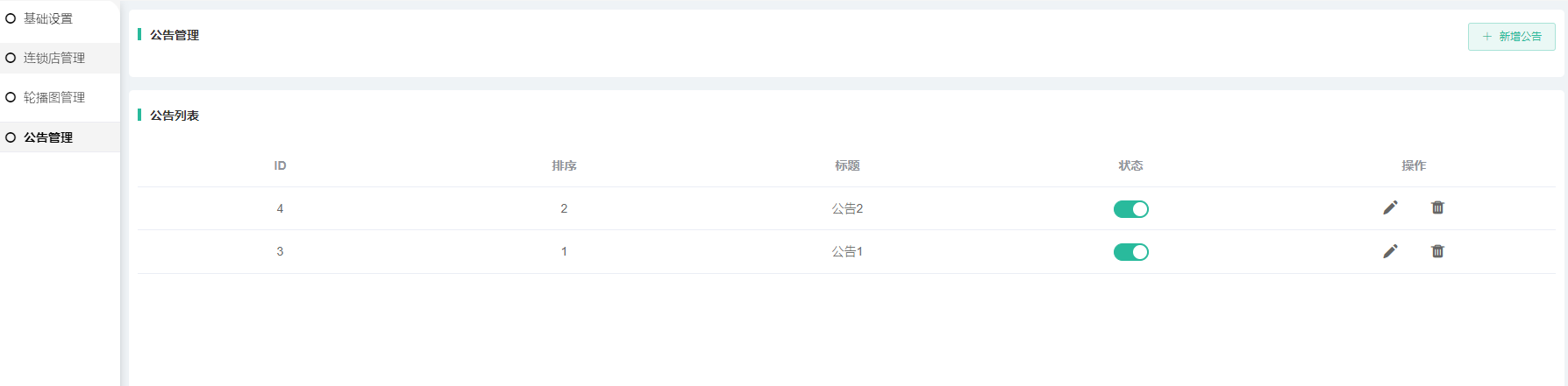 设置H5/小程序显示的公告 如果没有开启公告的情况下 H5/小程序则不显示