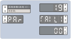 ,设置连续纸表尾第1行;(调用5号特殊信息);00-不打印;01-打印标准大小字体;02-打印倍宽字体;03-打印倍高字体;04-打印放大字体;出厂默认为00