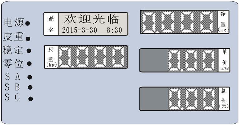 Ø 电源:当秤接通电源开机后,电源指示灯保持点亮;
