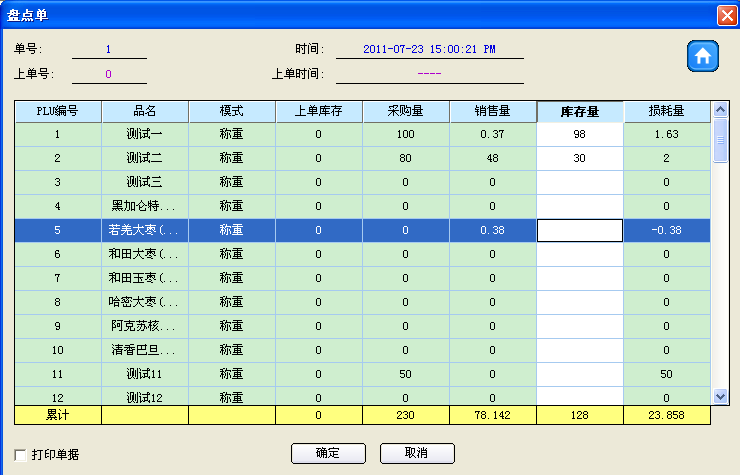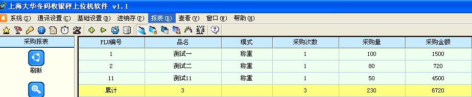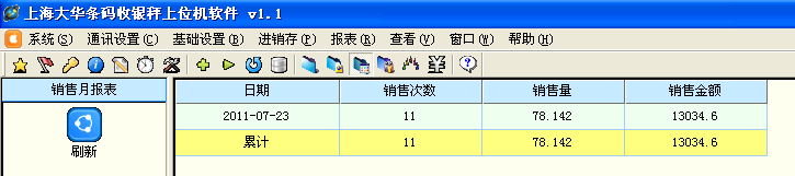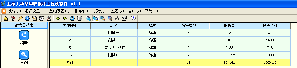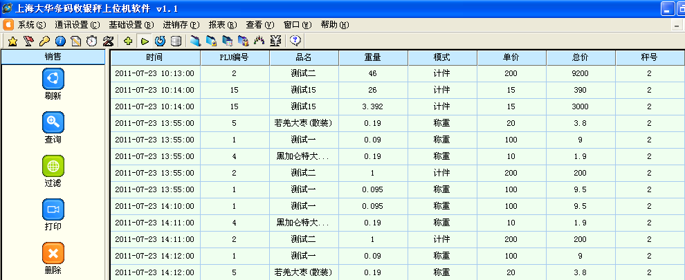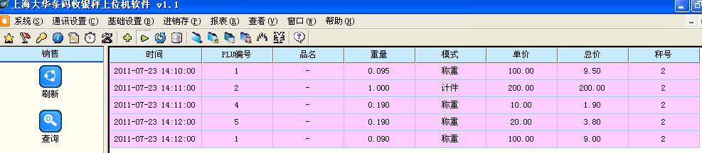 根据删除条件删除销售某一条或某几条销售记录,如图所示,删除PLU号为4的商品销售记录,删除后销售记录中便无此商品的销售记录。