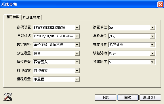 系统参数设置包括两部分:通用参数和连续纸模式设置。
