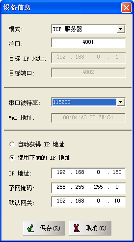 如果此电子秤为网秤,点击通讯设置–秤网卡设置,出现如图1所示界面,点击“搜索”便可以搜到电子秤的IP,如图2所示,搜索到IP后点击设备信息或双击IP地址一栏,在IP地址一栏可以修改电子秤的IP地址,波特率为:115200,端口号为:4001,修改好点击保存,电子秤IP修改成功。