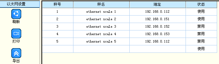 如果电子秤为网秤,则在此设置电子秤的IP,并且设置它的使用状态。如图2.2所示