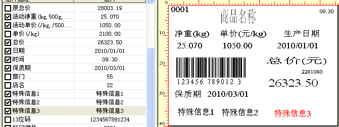 特殊信息主要用在标签上设置商品时所需要的特殊信息。