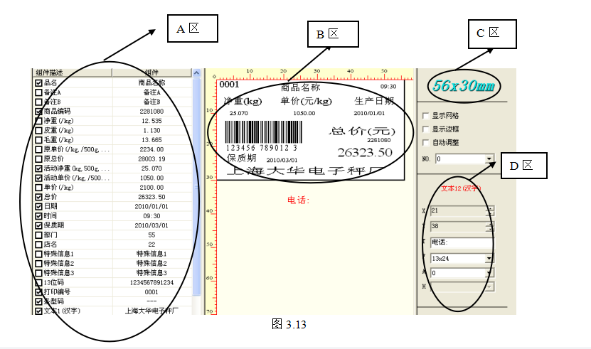 每二步,在标签设置项需在设置标签处将特殊信息1、特殊信息2、特殊信息3(如果只需其中的一个或两个,也可以放一个或两个在标签上)放在标签上,下载到电子秤里,如图