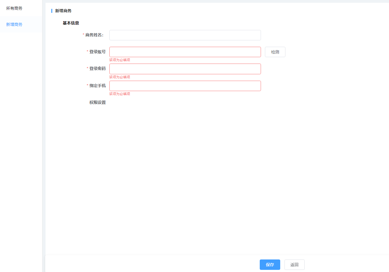 添加商务后,商务可以单独登录系统!
