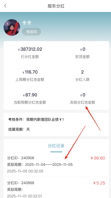 11、增加前端冻结的奖金池金额展示和分红周期时间展示开关(这个需要考核任务有开启才会展示)