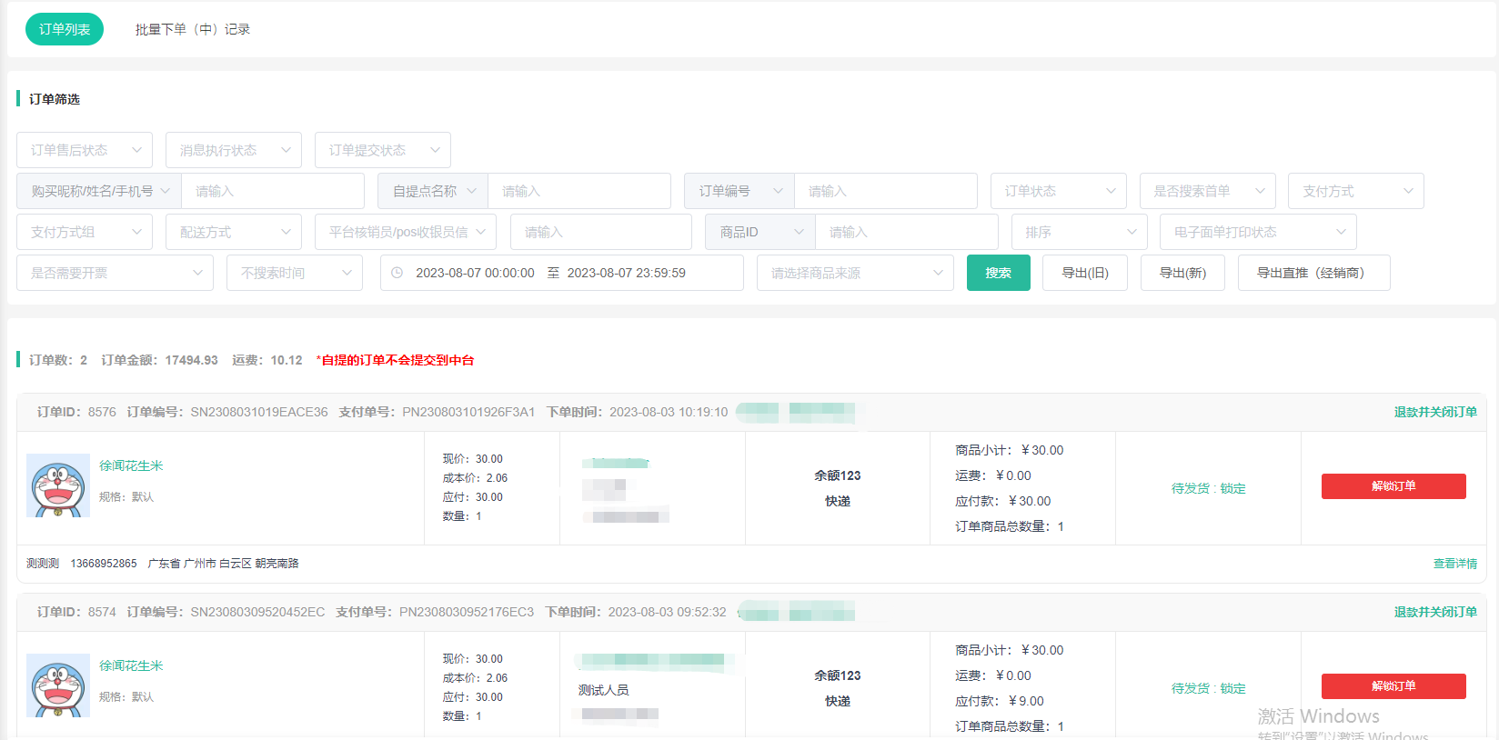 直播间列表:显示直播间的开始时间、直播间名称、主播名称、分类、直播状态、累计时长、总观看人数、商品数量、带货订单数量及金额、导入状态
