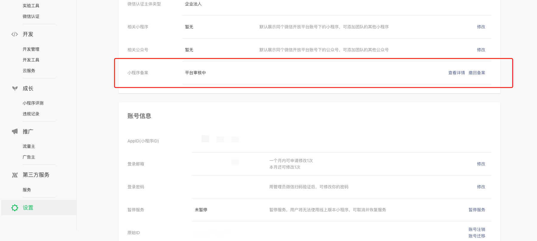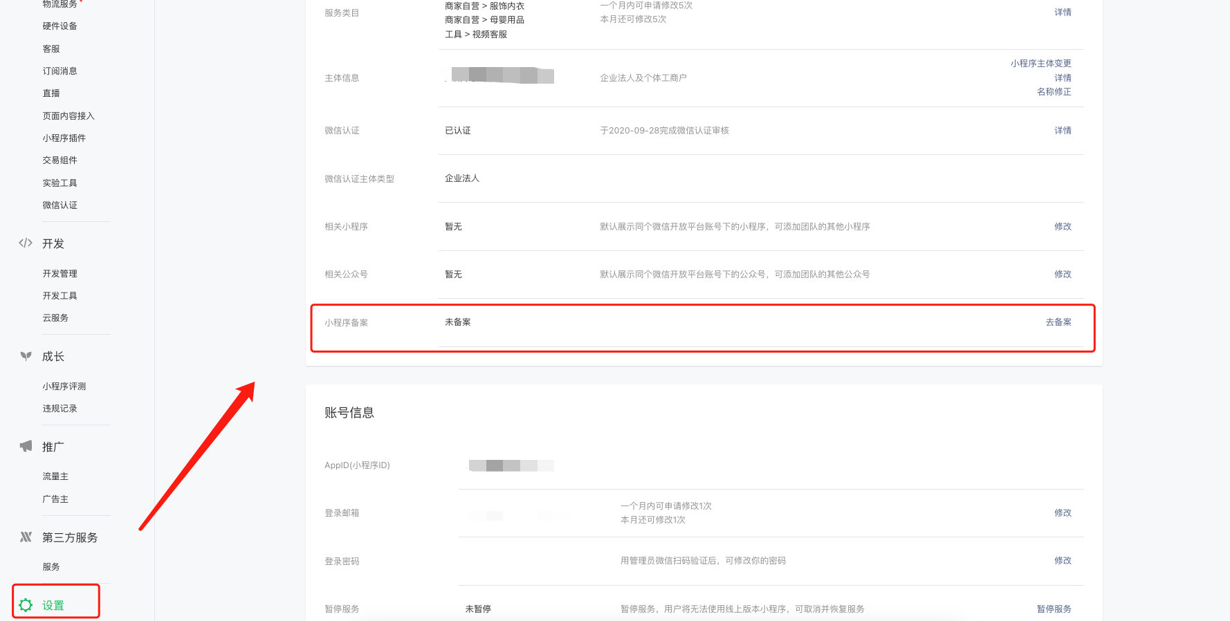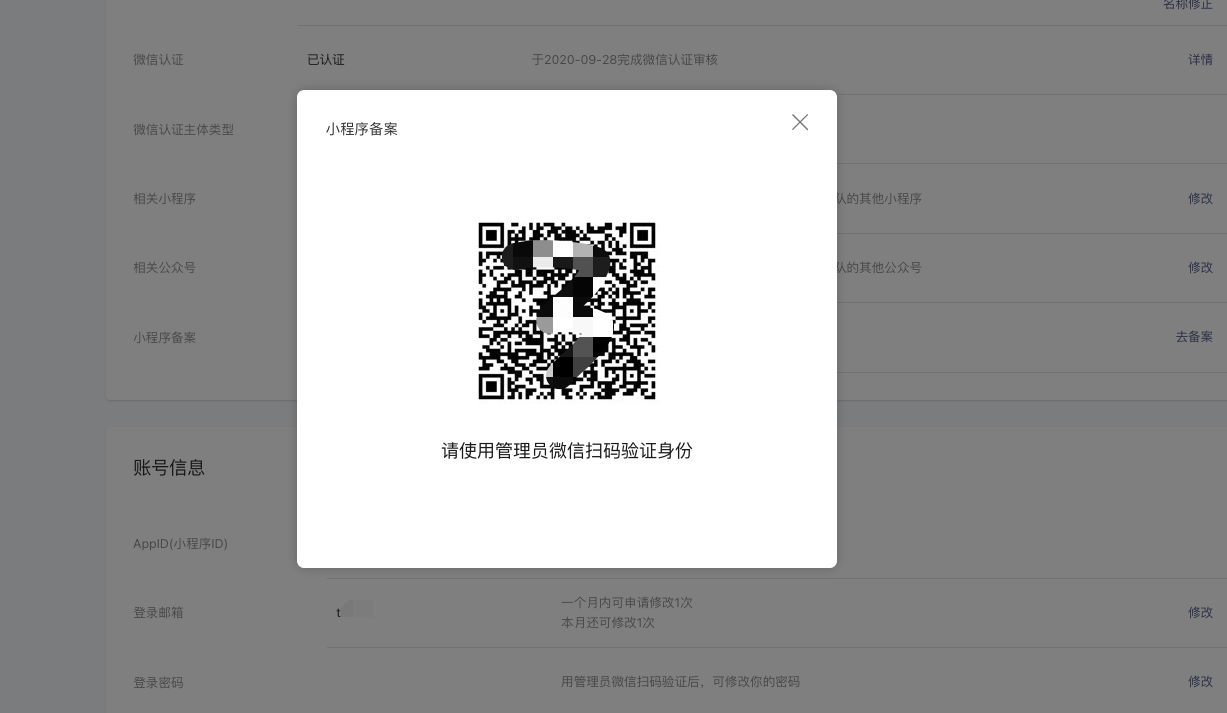 1、登录小程序平台mp.weixin.qq.com,设置,点击去备案,需管理员扫码验证身份。