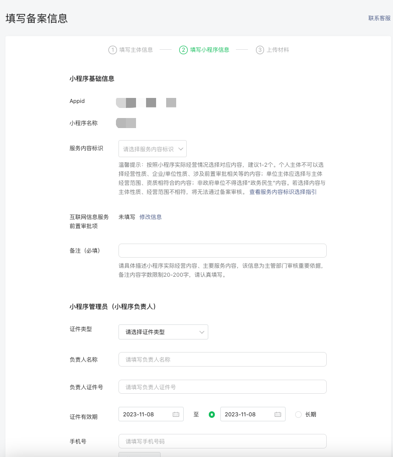 注意,主体负责人和小程序负责人的应急手机号和邮箱,尽量不要使用一样的。