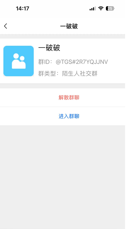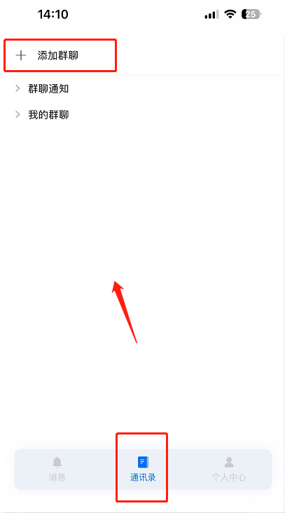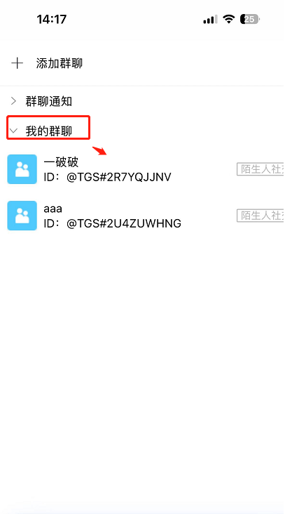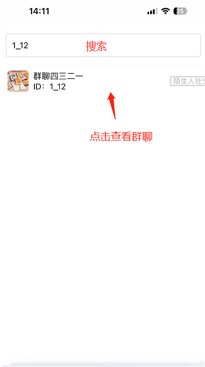 1,添加群聊:输入群ID搜索,选择群聊申请加入;