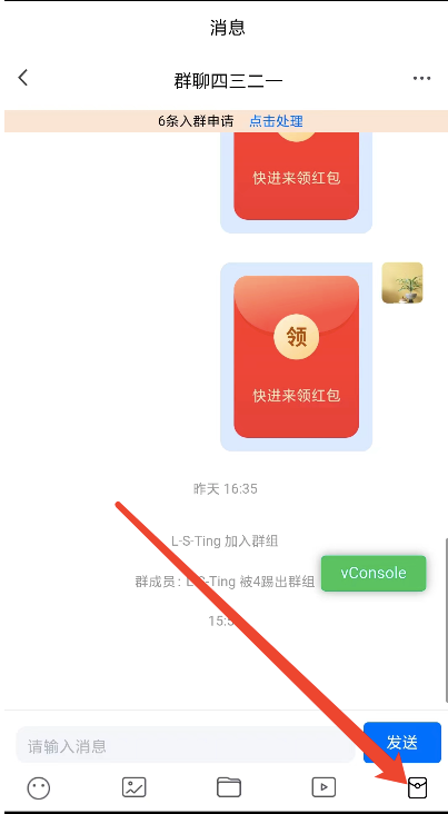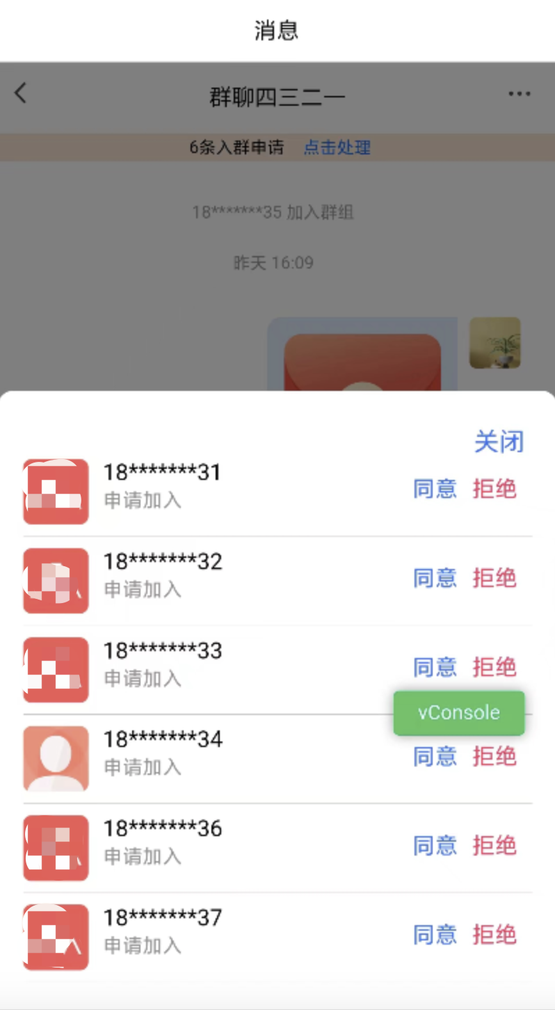 2)若有入群申请,顶部会显示入群申请提示,可点击处理;