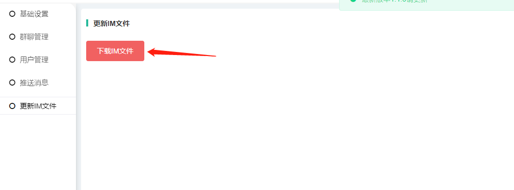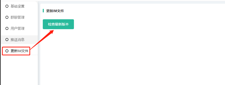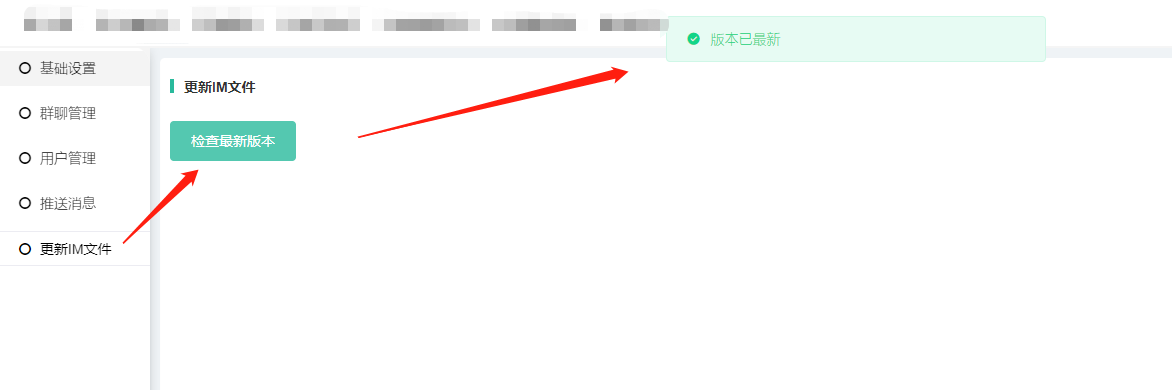 前端有更新可点击更新,点击检查最新版本,然后下载IM文件即可;