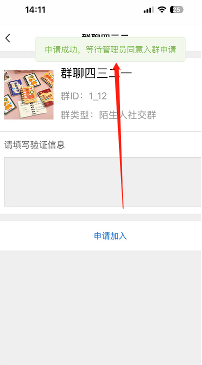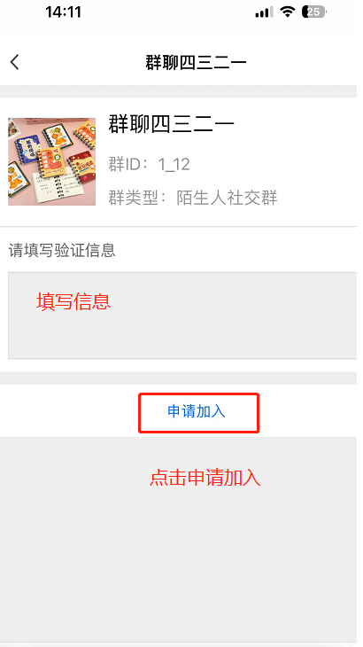 2)申请加群方式:控制前端会员搜索到群申请加群的方式;