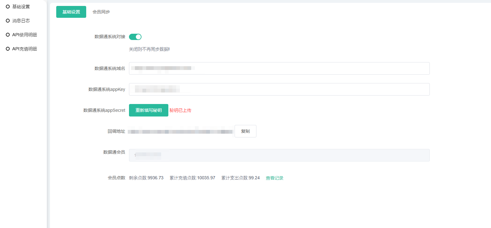 数据通会员:该APPkey在数据通关联的会员,该会员充值的点数信息