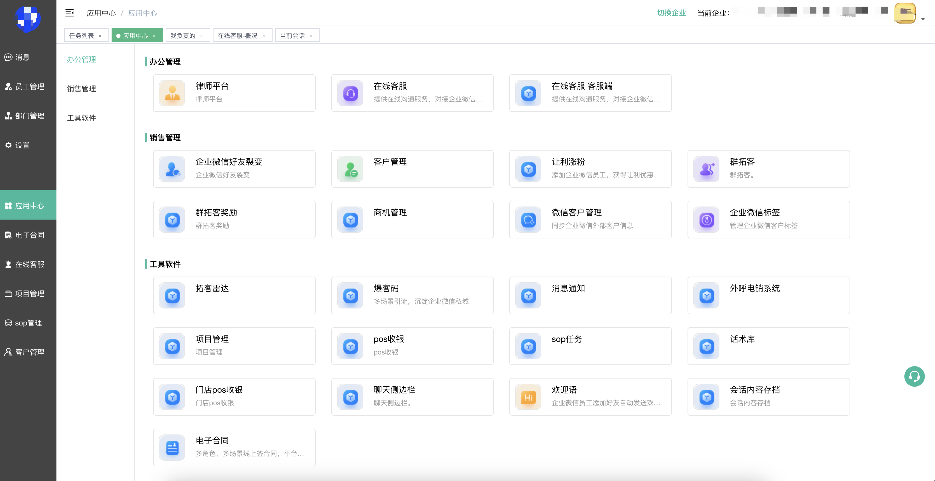企业微信对接、客服、电子合同、项目管理、pos 收银等功能使用的独立后台!