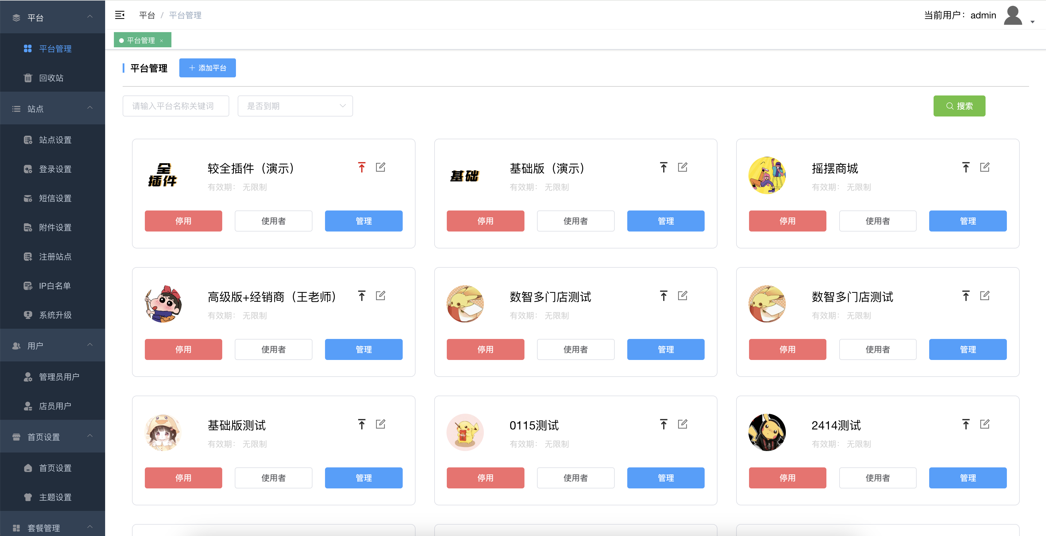 后台多商城管理框架,支持多平台管理、远程附件设置、登录设置、系统升级等操作。