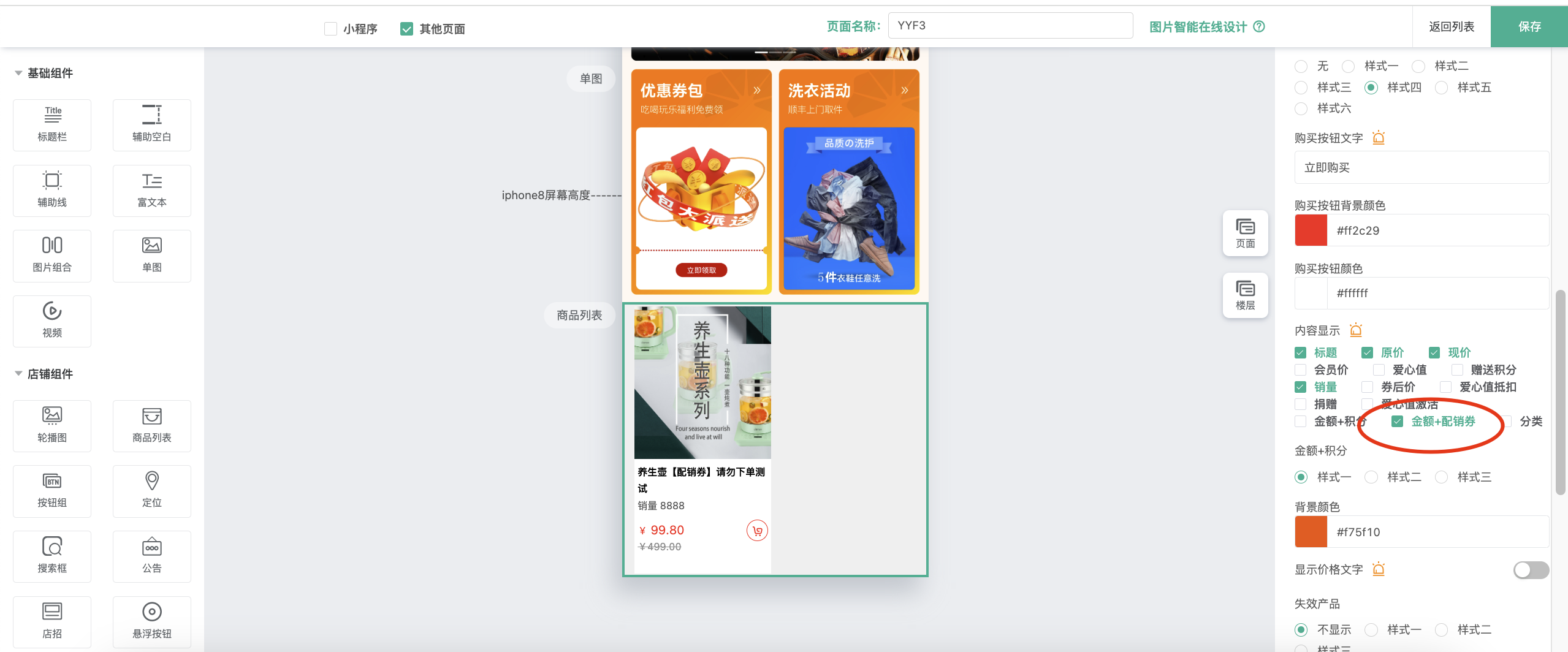 七、后台装修页面商品组件增加金额+配销券内容显示