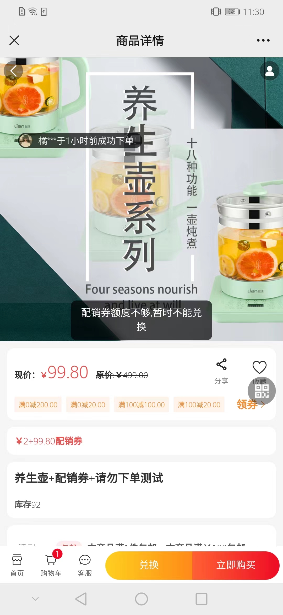 (七)如果额度不够,兑换会提示配销券额度不够,暂时不能兑换。