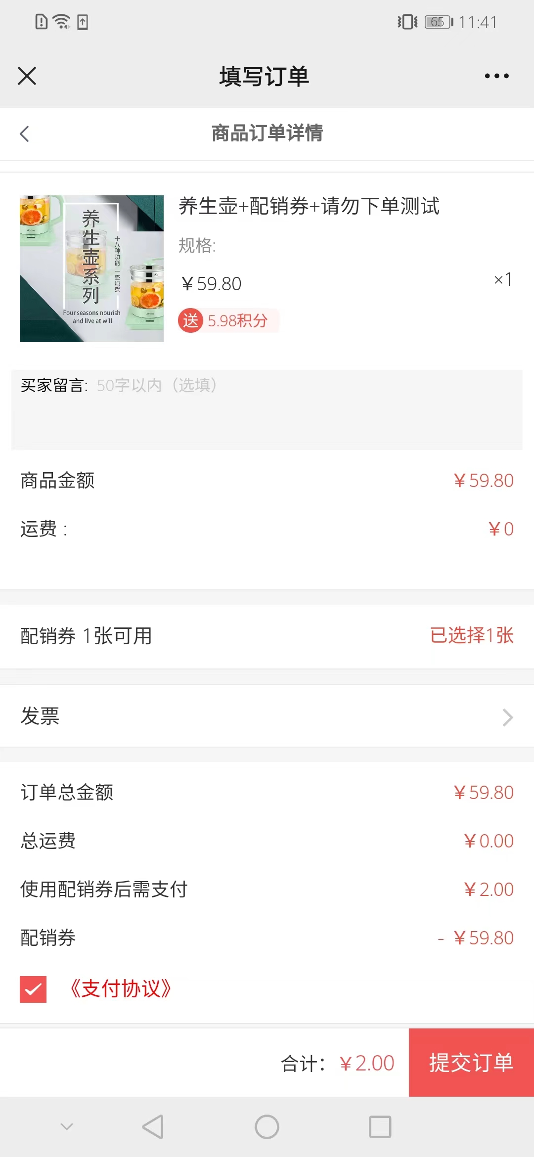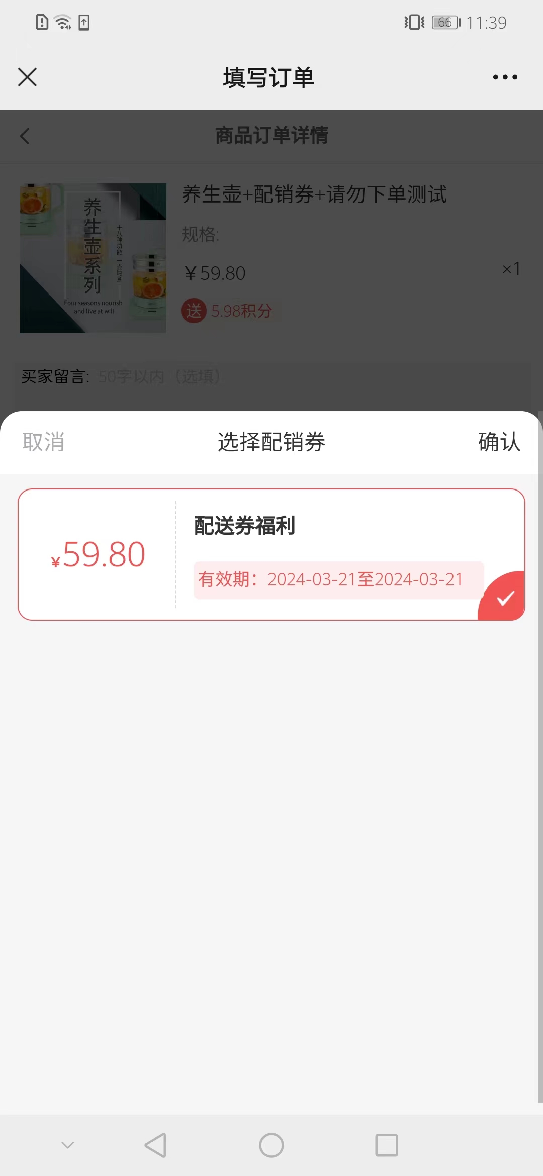 (六)选择配销券后还需要支付后台设置的需支付金额+运费