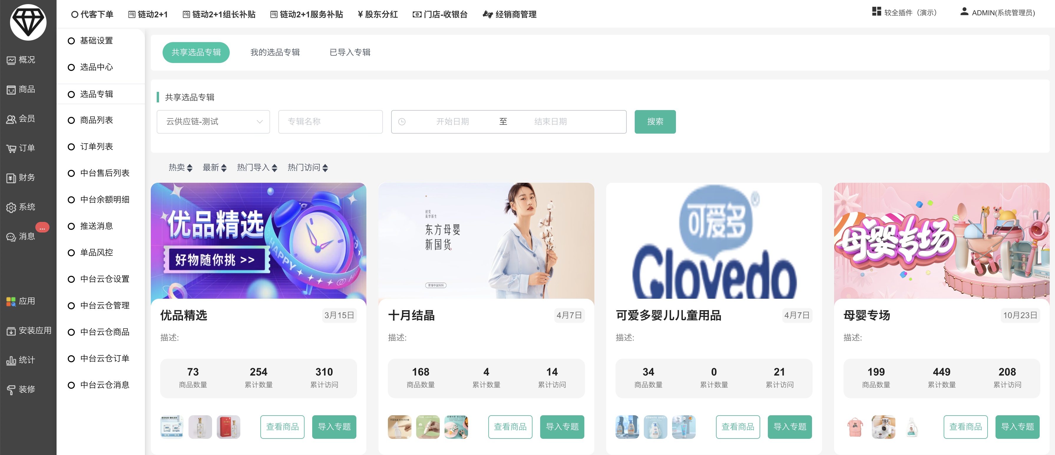 1、供应链中台将商品加入私有选品专辑,或者直接调用共享选品专辑商品;
