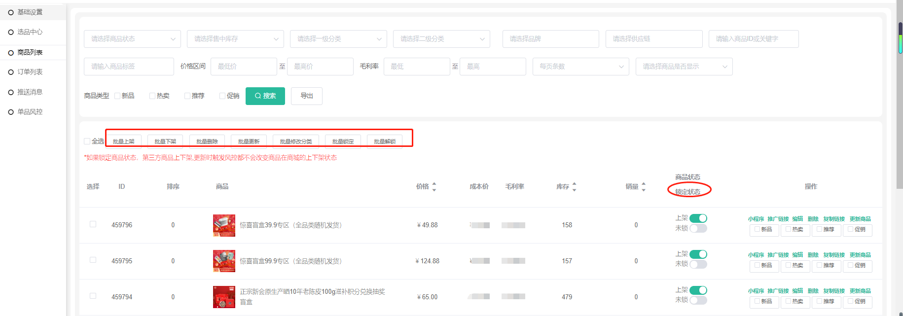 *如果锁定商品状态,第三方商品上下架,更新时触发风控都不会改变商品在商城的上下架状态