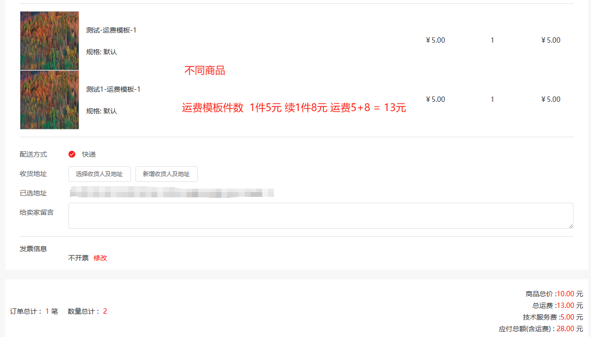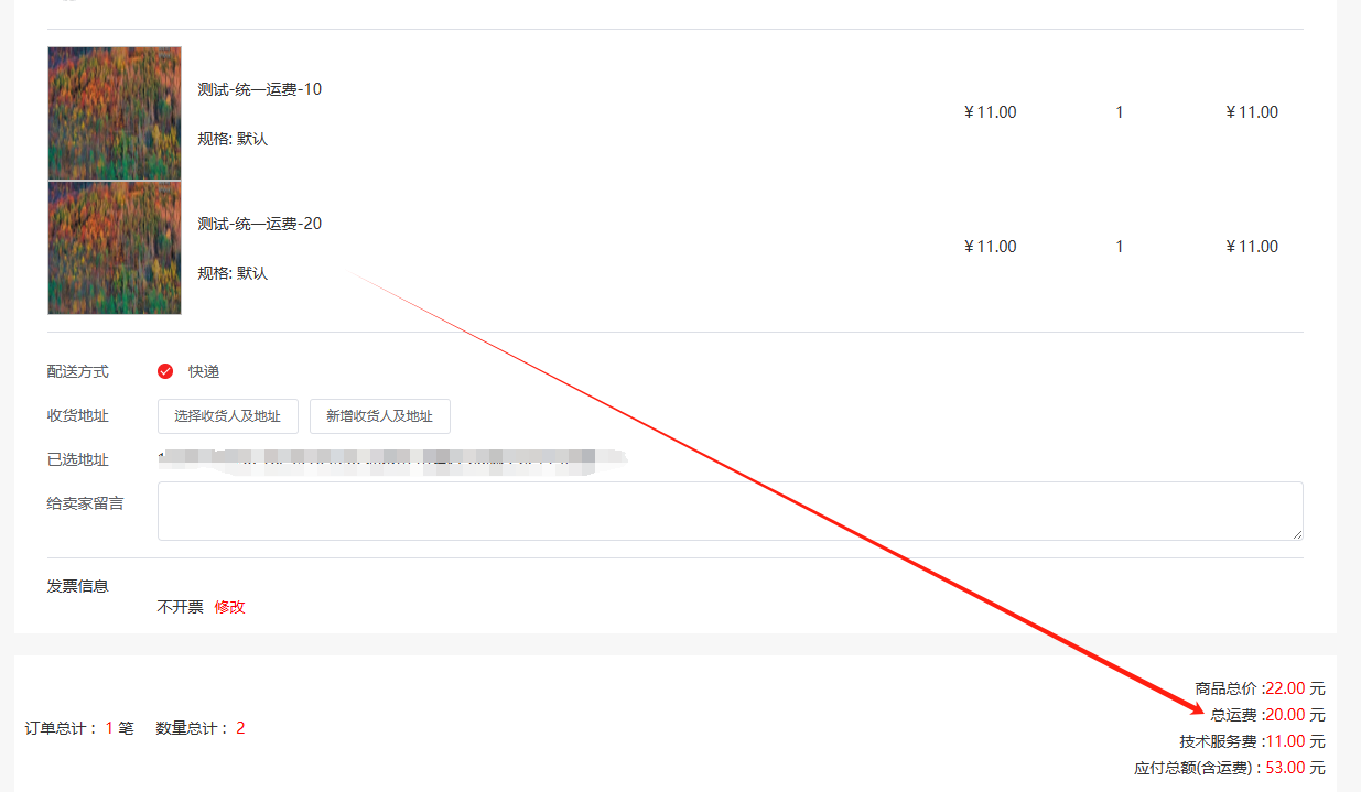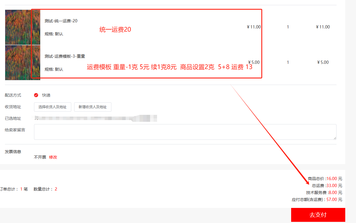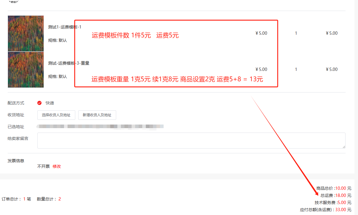 4)统一运费商品,和运费模板商品一同结算:单独计算统一运费商品应收运费,再累加运费模板应收运费;