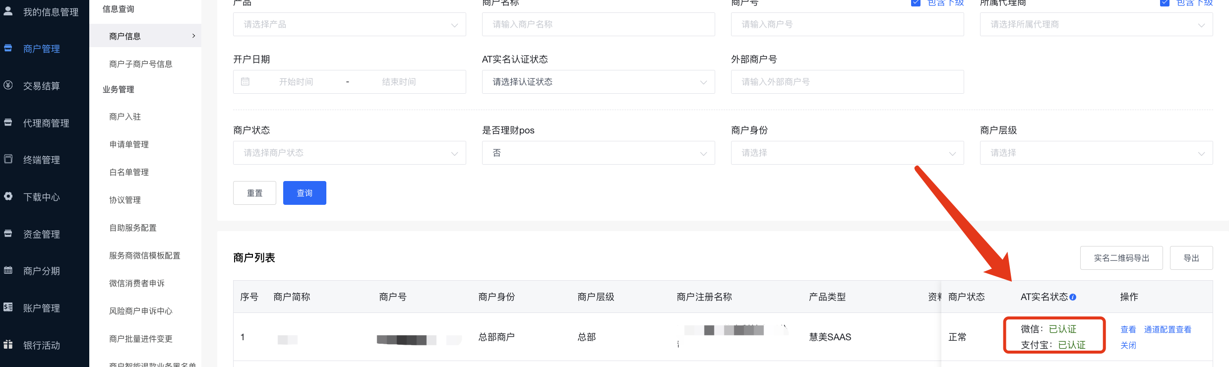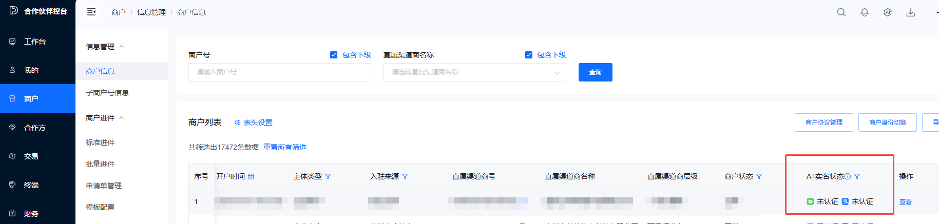 在服务商后台https://dashboard.huifu.com/partners/login — 商户-商户信息管理 — AT实名状态 — 点击去认证,提交实名验证。