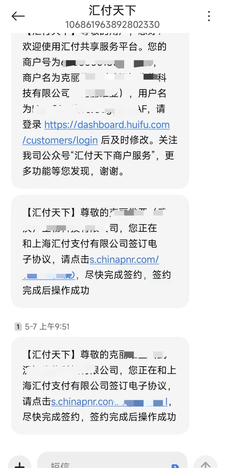 电子合同会发送到法人联系人手机号上,短信内容如下: