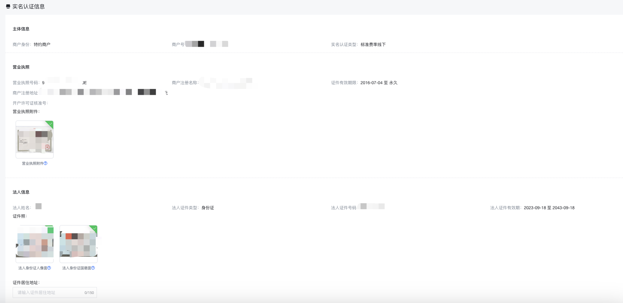 温馨提醒:入驻资料务必真实,所有资料图片严禁 P 图,如有虚假,一旦被汇付风控检测到,封禁代理账号、商户号。