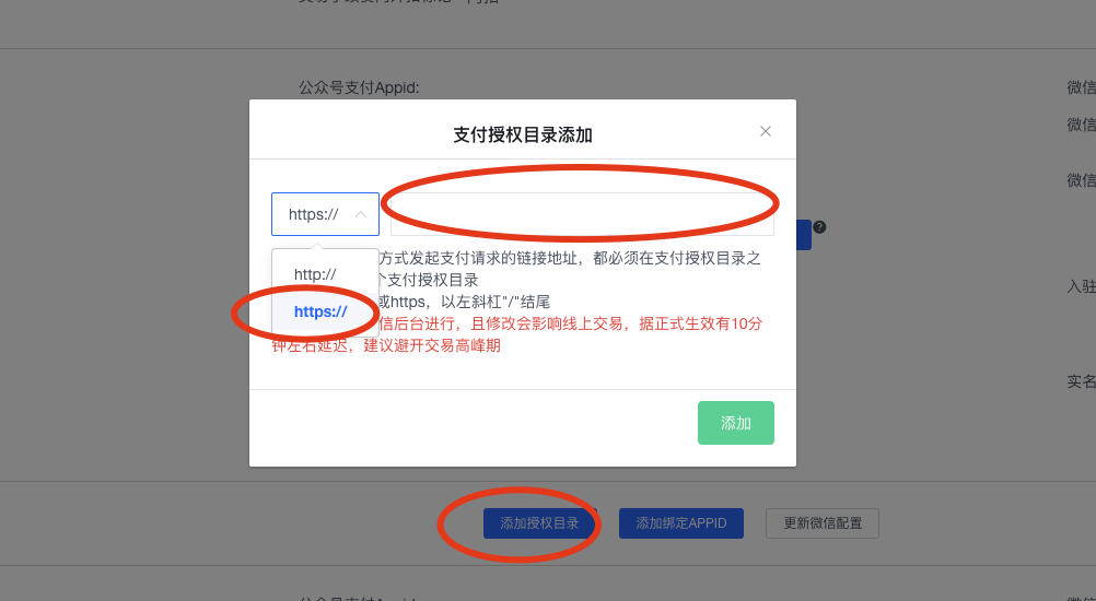 1)支付授权目录的前缀(http/https)——请点击“▼”下拉选择“https://”,不要选http://