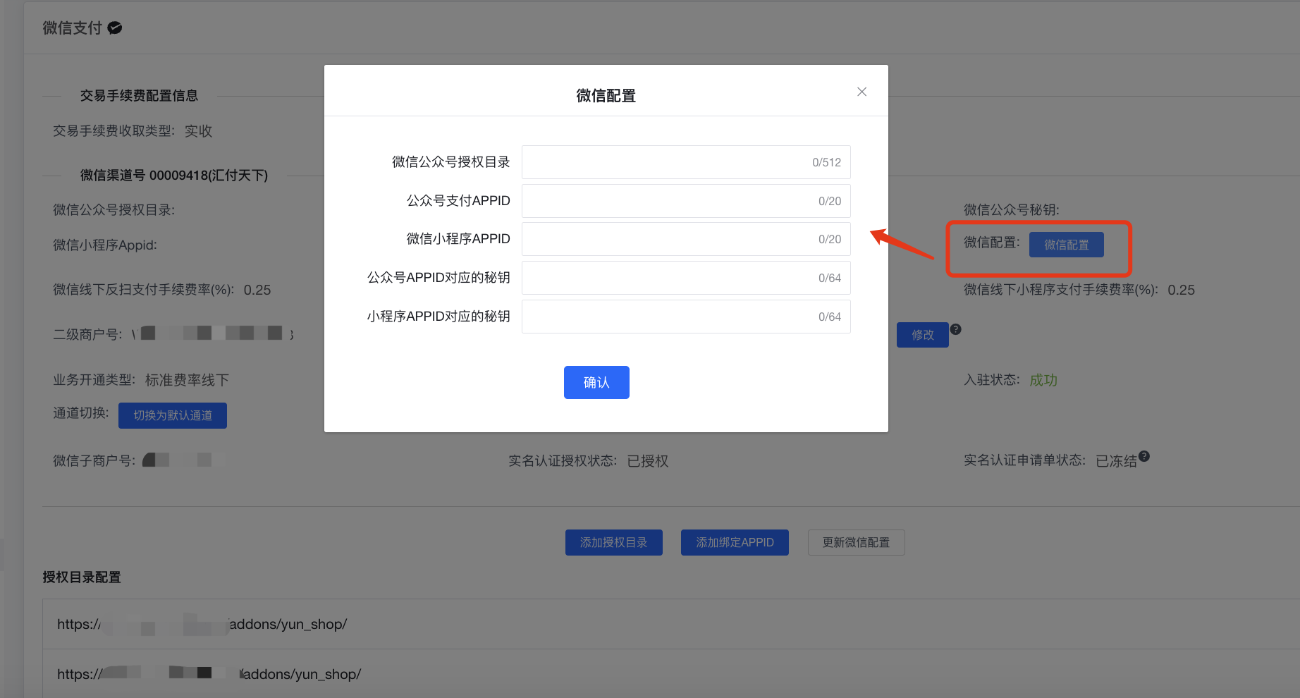 亦或者进入支付功能管理,点击配置进入,也是一样认证界面