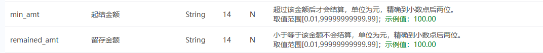 留存金额:小于等于指定金额不会结算,单位为元,精确到小数点后两位。