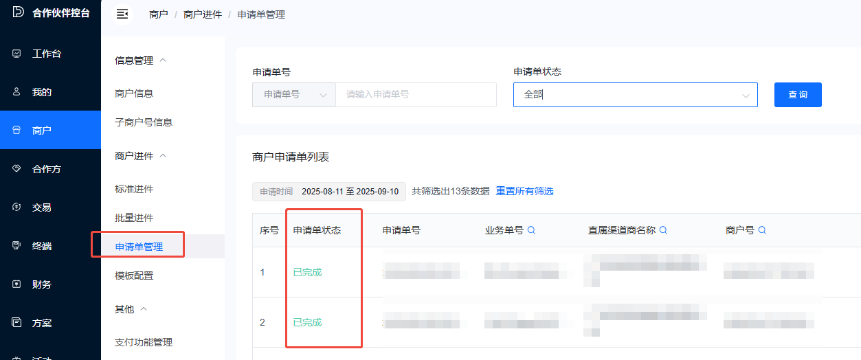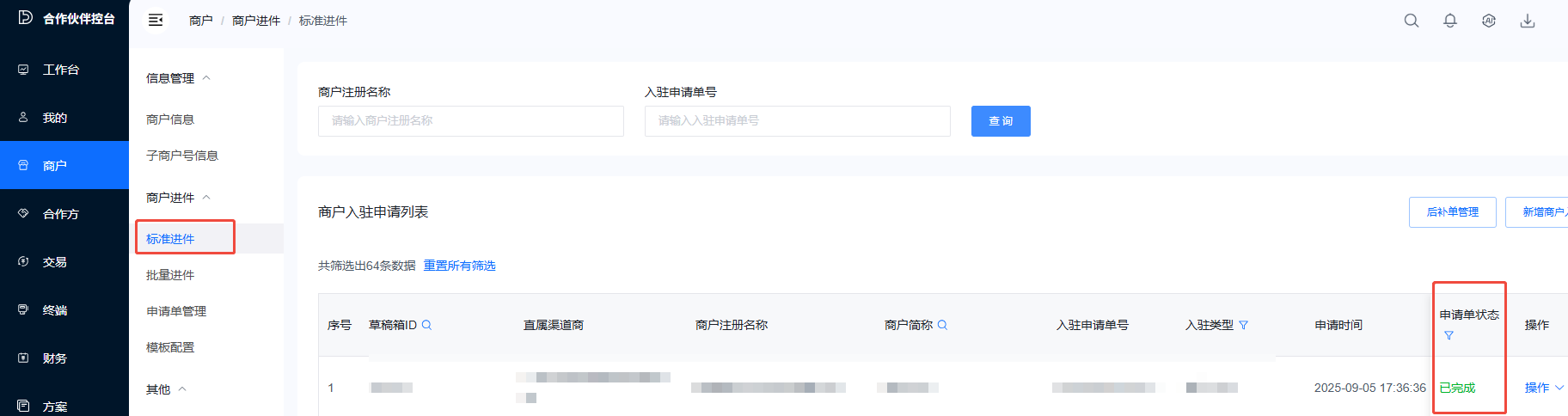 签署合同后,商户已入驻,可以在商户信息查看,也可在申请单管理–已归档列表查看,也可在商户入驻列表查看。
