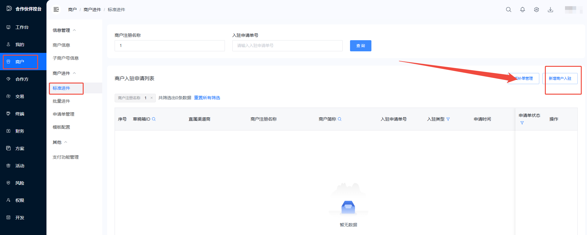 登录服务商后台https://dashboard.huifu.com/partners/login ,在商户管理 — 商户入驻 — 点击新增商户入驻。
