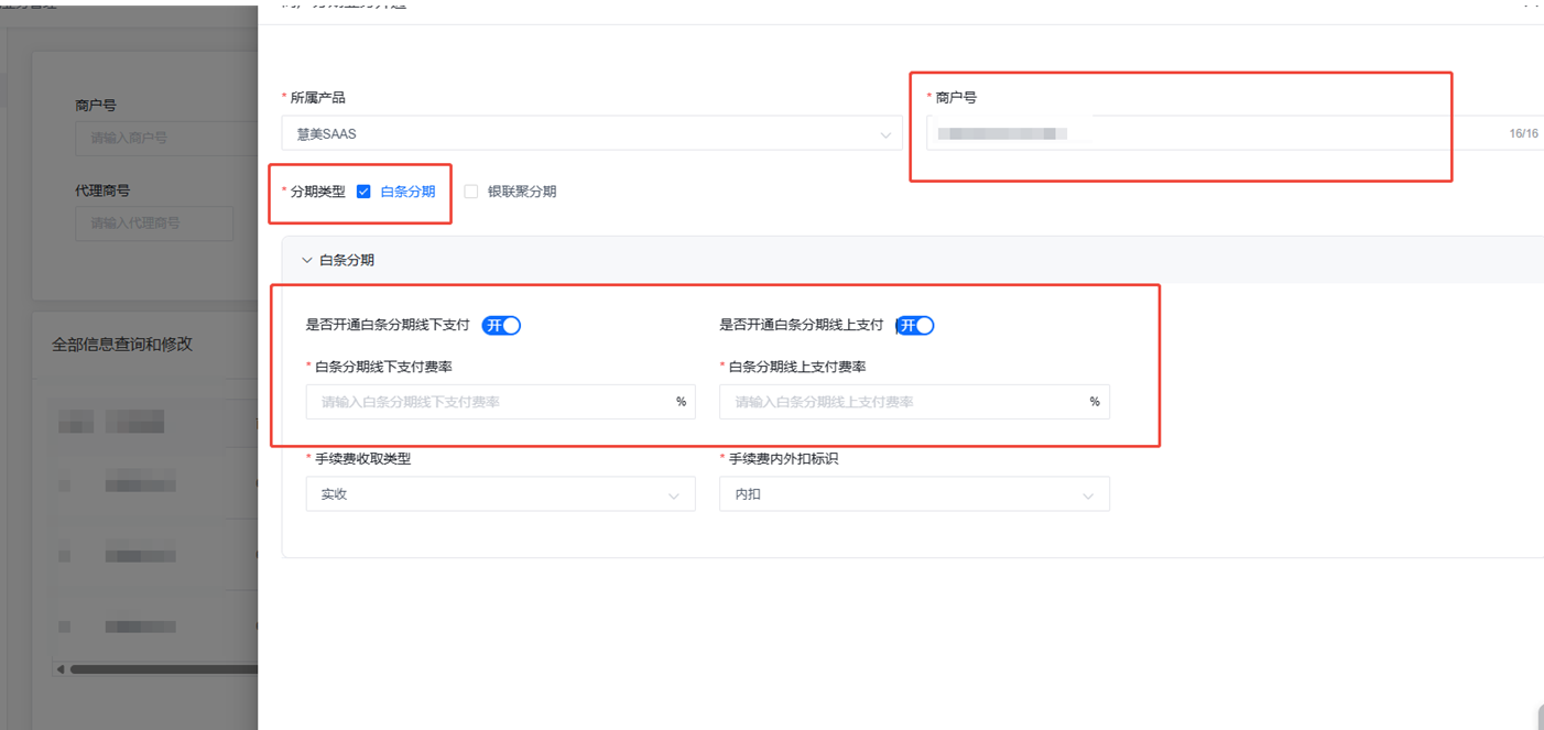 登录汇付服务商控台,活动-分期业务管理-商户分期业务开通,输入需要开通的商户号,分期类型勾选白条分期,填写费率即可