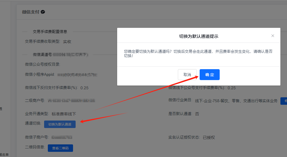要检查默认通道是不是线下类型,若显示“否”,需要手动切换为默认通道。